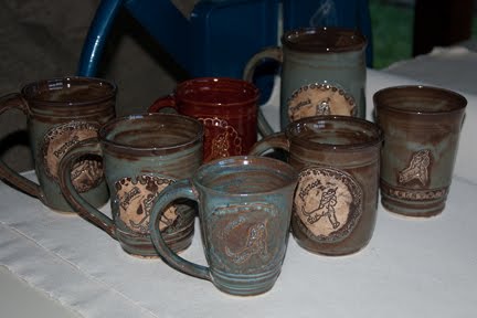 I'm breathing a sigh of relief. After hours of working to get enough thrown to fill the kiln and working around my other work commitments I worry it won't be a good firing. I was relieved to see some nice items when I peeked at about 760 and even more relieved when I pulled those last shelves up to see almost all pieces were decent. Several turned out very nice and to my expectation.